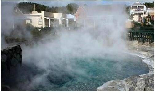 新西兰北岛中北部的罗托鲁阿市坐落在火山多发区,全市遍布热泉,空气中硫磺弥漫,热泉灰黄泥浆沸腾,加之毛利文化多姿多彩,前来观光的游客终年络绎不绝。这里到处可见冒着蒸汽的温泉、硫磺湖和沸腾的泥浆地,不时有蒸汽从地洞中喷出,仿佛有一头活着的巨兽还潜伏于地底,无怪乎被称为“地狱之门”。