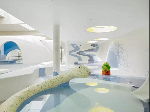 不同深度,喷泉和水上游戏的幼儿游泳池让孩子们在亲近父母的同时体验水。儿童更衣室和卫生区与成人的更衣室和卫生区相结合,毗邻母婴区。
