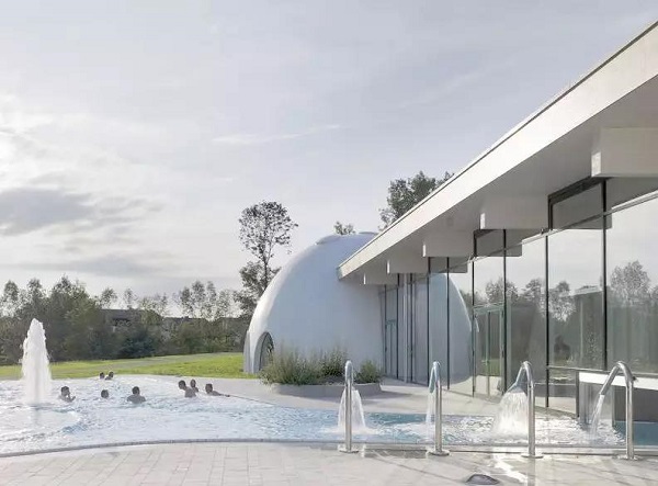Bad Aibling温泉中心坐落于德国慕尼黑东南部的巴特艾布灵温泉度假村,项目希望通过新的温泉浴场,相关的大型健康区和室外游泳池来补充其现有的健康和休闲设施。该温泉集群凭借低规划建筑密度和能耗的优势解决了温泉能耗问题。