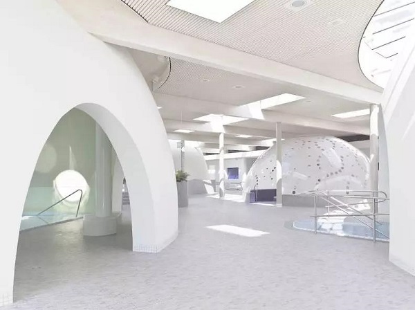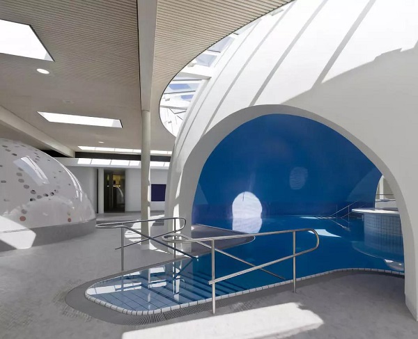大厅光学宽敞的元素是圆顶和水上乐园。地板被调制为躺下或坐着的景观,或用于全景视图,标记路径,位置和形式区域。