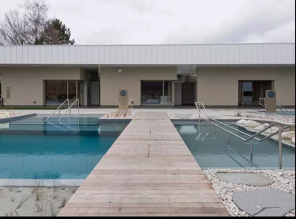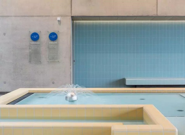 清晰的外部设计反映在室内水疗池的内部,从高处到低处,从公共场所到私人场所,从大声到静音,这些设施都得到了体现。