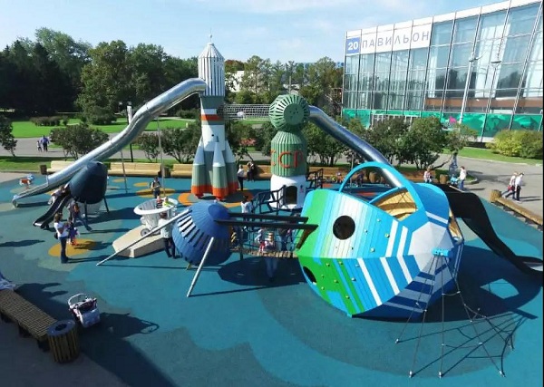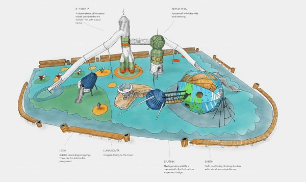 游乐场上最大的元素是R-7 SOYUZ火箭,这是1960年代设计的苏联运载火箭,至今仍在服役。孩子们可以先在博物馆里了解火箭,然后在游乐场中体验在火箭上的攀爬。