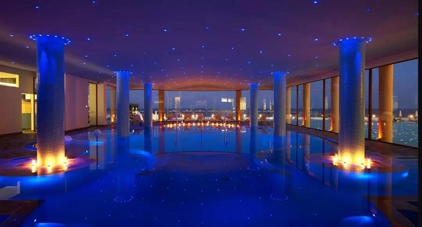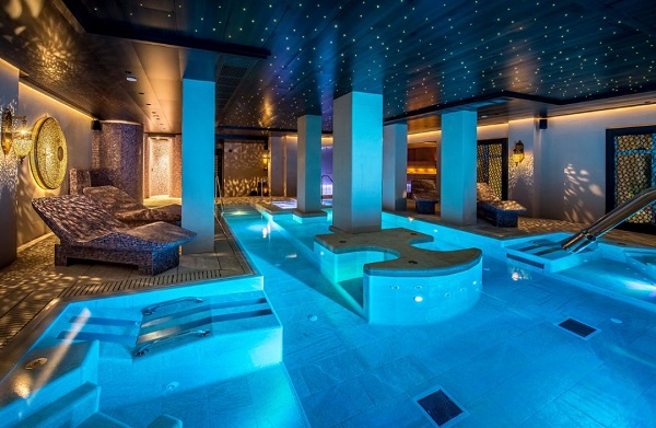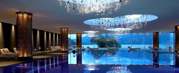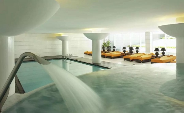 室内包括大温泉浴场、室内水疗、汗蒸及泳池,同时引入现代景观设计感。