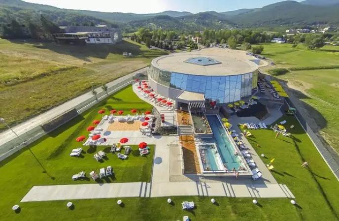 该项目于2014年正式运营,由当地企业家和市政当局的私人投资基础上创建。建筑结构独具创新且设计趣味。整体业态提供酒店住宿、温泉水世界(包括室内和室外区域)康体健身等。