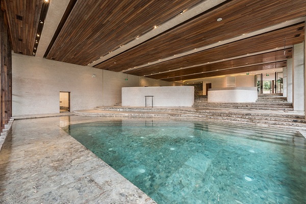 整个度假村是一系列建筑的集成,除了温泉中心,还有一座命名为MuWeCo的建筑。它拥有一个小型博物馆、婚礼大厅和会议空间。它有着个个性鲜明的拱形屋顶,使它的形状更像是一顶大帐篷,而不是一座大建筑。