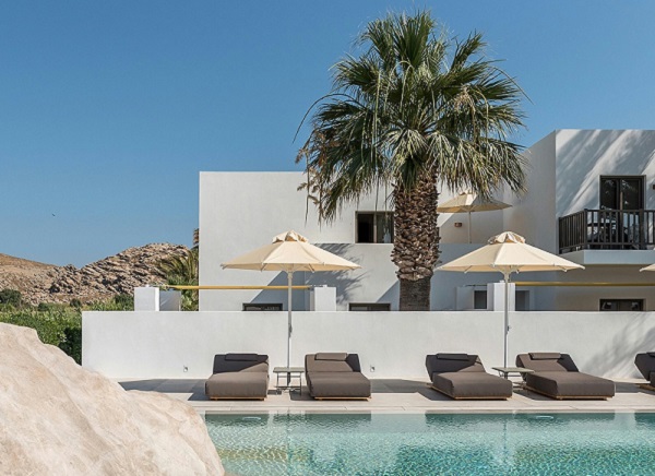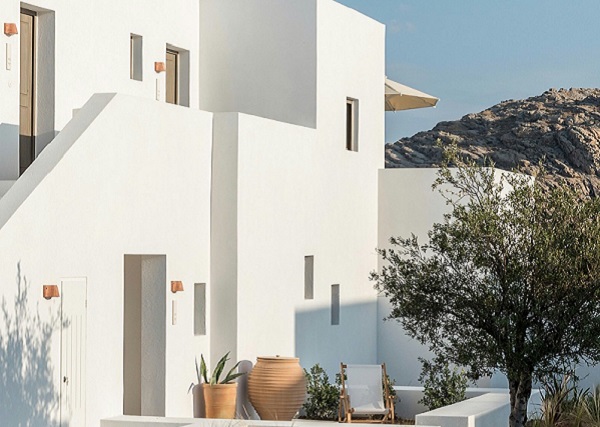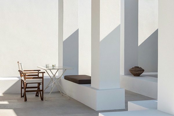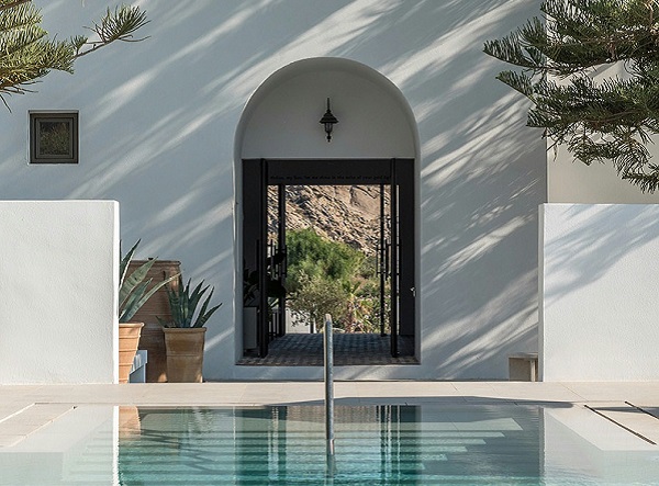 酒店试图通过简单精炼的设计回归到基克拉迪建筑的传统原则上,同时将帕罗斯岛的传统民居和堡垒建筑作为主要的灵感来源。接待区作为吸引客人的首要空间,被构思为一个现代的避难所,拥有狭长的窗户和独特而巨大的拱形入口,带来平和而宁静的氛围。