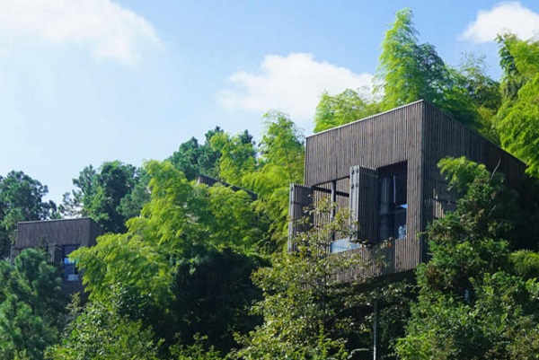 该项目含一个山顶温泉餐厅和在2500多亩的山水中建造的31栋树屋,建筑师秉承着对自然最大的尊重,让建筑仿佛消隐于山林之中,在尽可能减少对自然山野干预的同时保证了良好的度假体验和私密性。建筑师为了不破坏当地环境,尽可能地保留原有山野植被,将树屋依山而建,由底部的结构柱支撑,树屋彷佛漂浮于丛林之间。