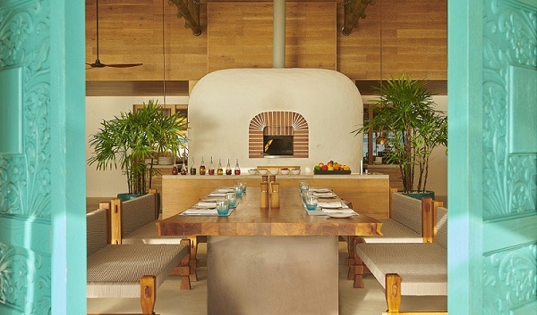 主餐厅是美食爱好者的天堂。从渔网上拆下来的绳索和复古玻璃球的航海风格点缀着整个空间。开放式的厨房展示着葡萄酒和美味佳肴、每日甜食、咖啡烘焙,以及当天捕获的海鲜。从白天到晚上,这里会出现不断变化的场景,客人可以在海滩上或在星空下享用美食。爱情鸟座椅面向大海而设,客人们可以欣赏壮观的日落。
