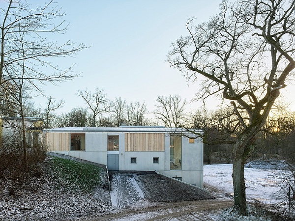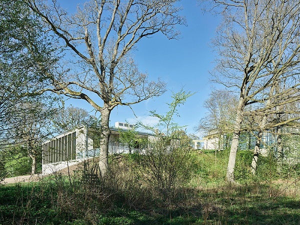 此次水疗中心项目的设计尊重了建筑的已有结构,被安排在了花园内斜坡的下部分。花园西侧的拱廊成为了新建筑的门厅。从这里开始,部分土地被挖除,形成了较低平面。高挑的屋顶和下沉的地面之间,室内空间四面开阔,获得屋外自然景色的良好视野。