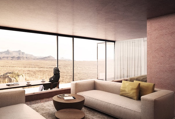 据艺水科技了解,度假村位于Snæfellsness西部半岛,面朝一座雄伟的冰川覆盖的成层火山。该度假村旨在邀请客人踏上自我发现之旅,探索自然与建筑之间的相互作用以及它们为内向之旅提供必要触发器的综合能力的建筑概念促进了旅程。因此,该建筑的设计旨在以各种方式让客人接触大自然。由玻璃板围成的空中庭院吸引着内部的岩石景观,而泻湖则流经接待处,模糊了内外之间的界限。