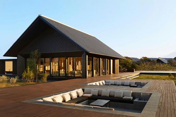 温泉度假村以现代的方式演绎了日本民家建筑,温馨的室内空间优雅而简约,用浅色调的日本木材精心打造。每个独立的套房都采用了落地窗设计,配备织物和木移门,可以从房间的一端移到另一端。传统的低矮瓦屋面和染成深色的日式杉木外墙,参考了当地温泉旅店朴素而深受自然影响的设计。度假村的景致也奠定了整个度假村的基调,富有日本当地特色的树木烘托出醇厚的日式风情,绿荫环绕,宛如画卷。